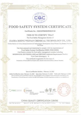 公司證書公司通過了ISO9001:2015、HACCP認證和FSSC22000等質(zhì)量安全管理體系認證。